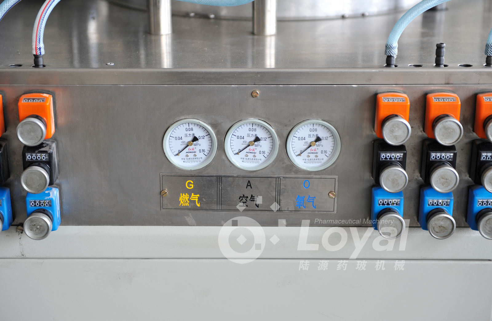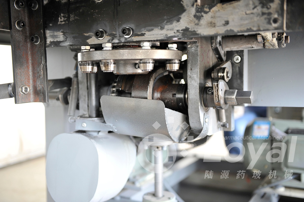 此機(jī)型適用于制造16mm-32mm 管徑的玻璃瓶,該機(jī)型采用A部上下雙夾頭設(shè)計,雙夾頭設(shè)計可以減小玻瑞管在生產(chǎn)過程中的晃動,增加玻璃管的穩(wěn)定性,提高產(chǎn)品質(zhì)量。其A部具有三套磨具,能很好的提高瓶口精度和質(zhì)量。B部具有8個工位,能很好的提高玻璃瓶的耐水性等內(nèi)在質(zhì)量。